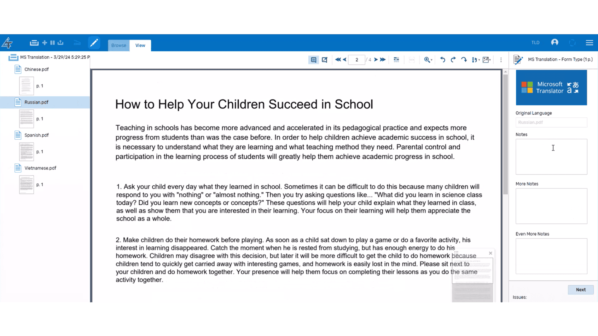 Easily scan batches of documents and enjoy the flexibility of asynchronous translation.